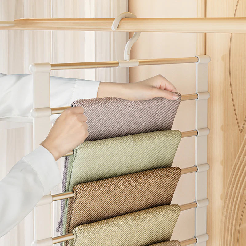 Designed to bring seamless organization to your closet, this multi-bar hanger combines smooth stainless steel bars with a sturdy, space-saving frame. The integrated hook ensures effortless hanging, while the sleek design keeps your wardrobe streamlined and accessible.